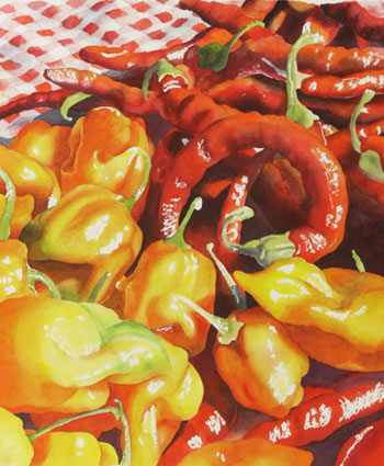 Fiery Food - hot pepper watercolor demonstration