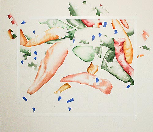 Lost Edges - watercolor demonstration of jigsaw puzzle