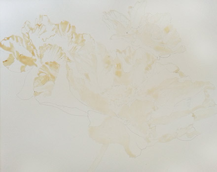 All the masked areas appear white or yellowish at this stage and it is easy to see the patterns of light and shadow on the petals.